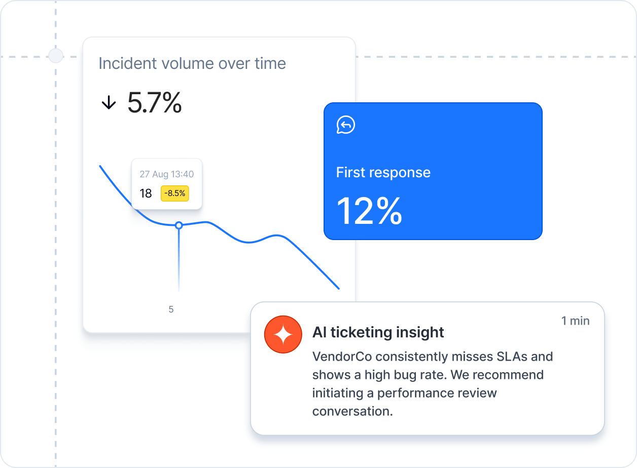 • Follows up tickets, escalates before SLA breaches, updates CMDB records, or alerts suppliers.