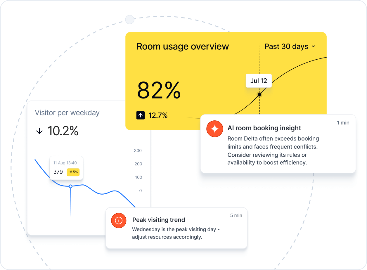 It’s not just raw numbers – you also get clear explanations and practical suggestions. For example, if meeting rooms are often unused, the data might reveal frequent no-shows in bookings, more teams working from home on Fridays, and an 18% increase in catering waste on the same day. The system then turns these insights into actions, such as sending booking reminders, reducing catering on Fridays, or repurposing unused rooms for flexible work.